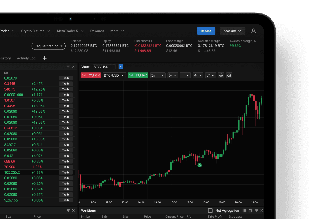 MetaTrader 5集合多种类资产,您可以在统一平台上交易加密货币、外汇、差价合约、以及更多。