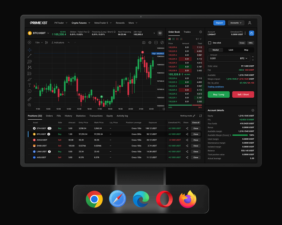 - बिना डाउनलोड किए सीधे अपने वेब ब्राउज़र से ट्रेड करें।